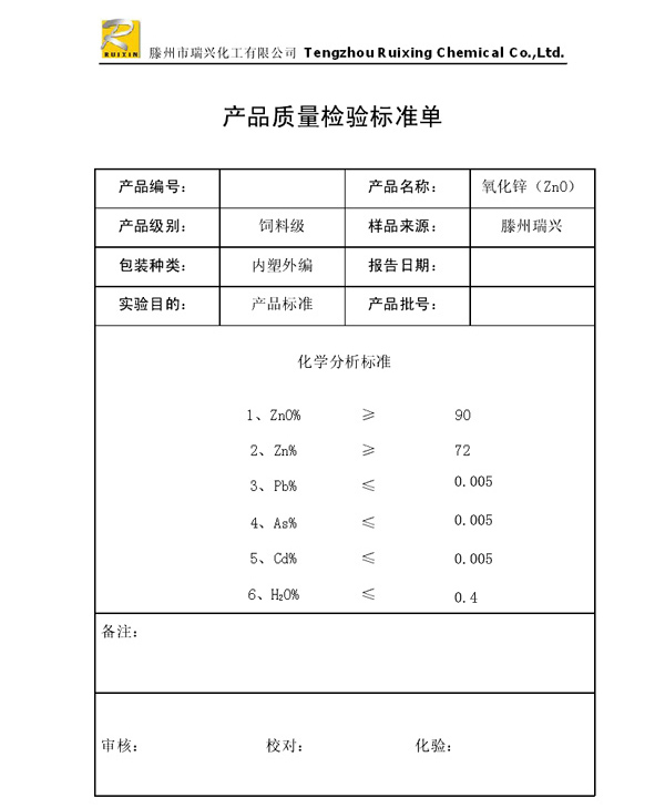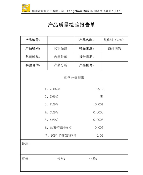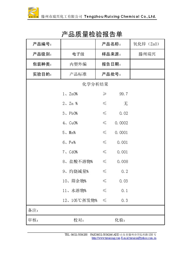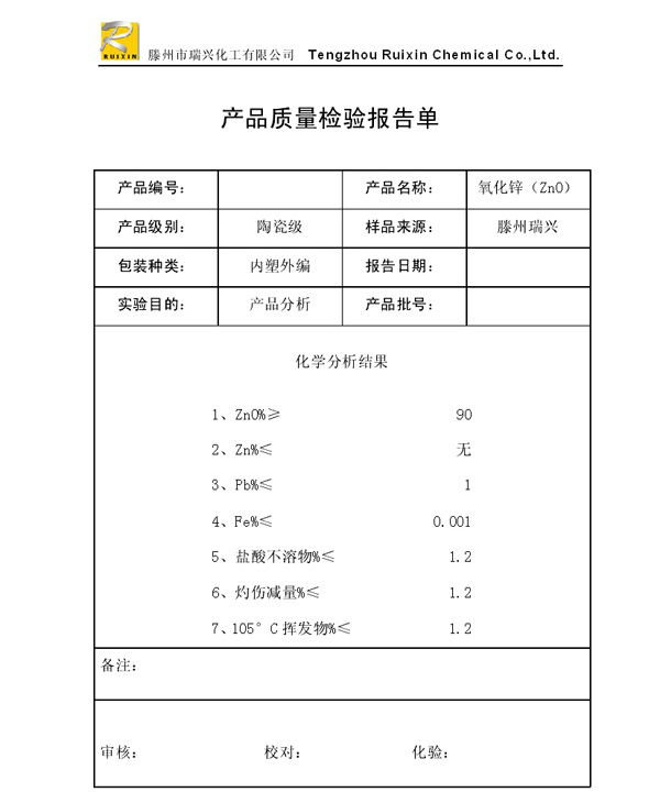 瑞興化工有限公司是生產(chǎn)氧化鋅的重點企業(yè),于2008年通過ISO9001:2008質(zhì)量管理體系認(rèn)證。“瑞興”牌氧化鋅在國內(nèi)擁有較大穩(wěn)定的市場,并遠銷東南亞、中東、中南美等國家和地區(qū),在國內(nèi)外享有較高聲譽。